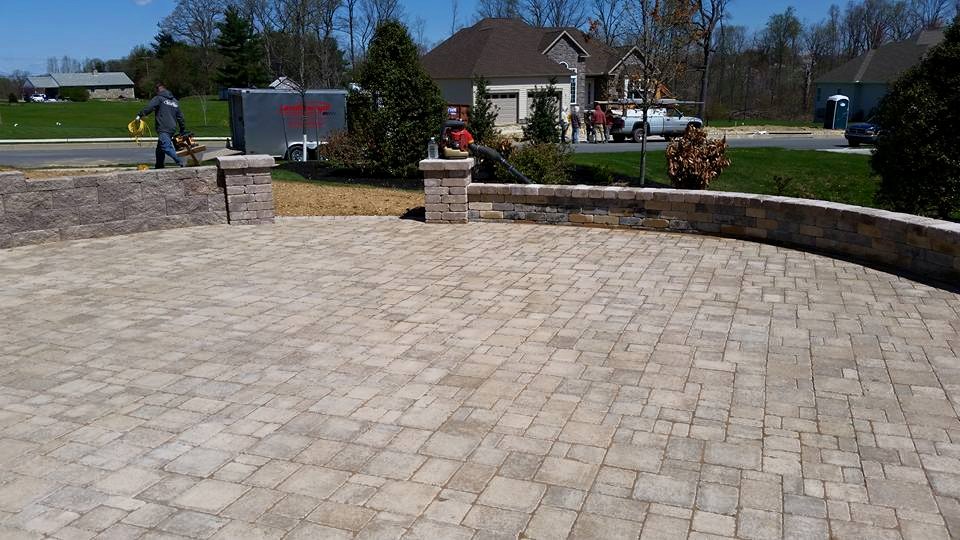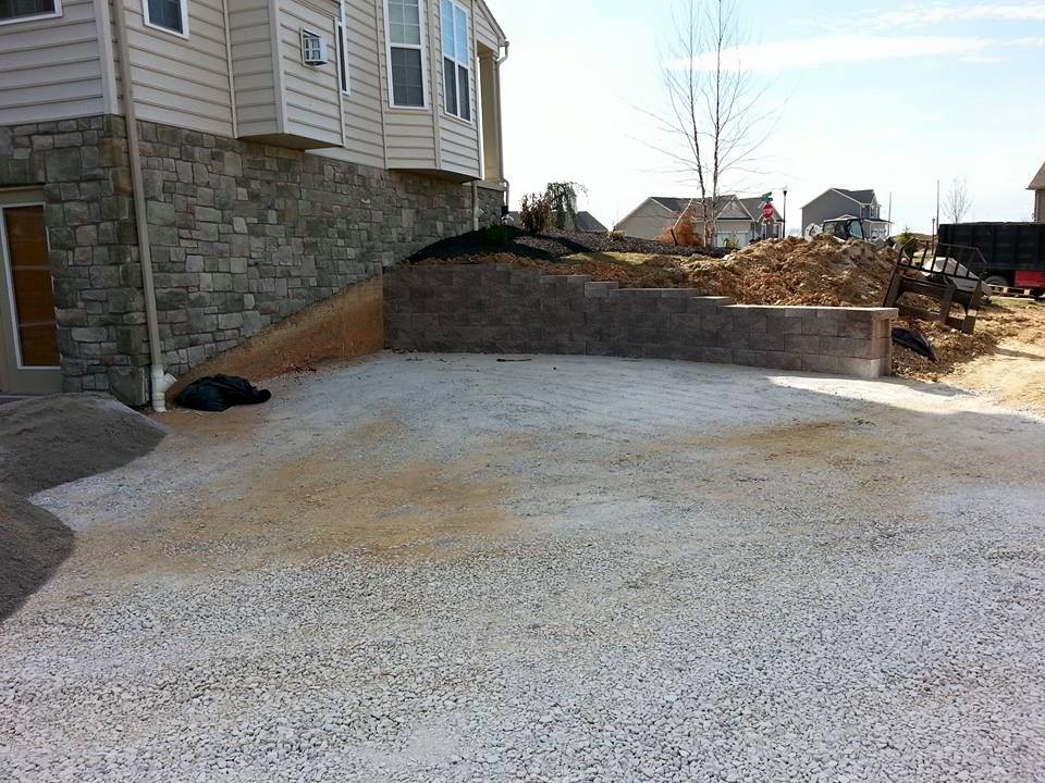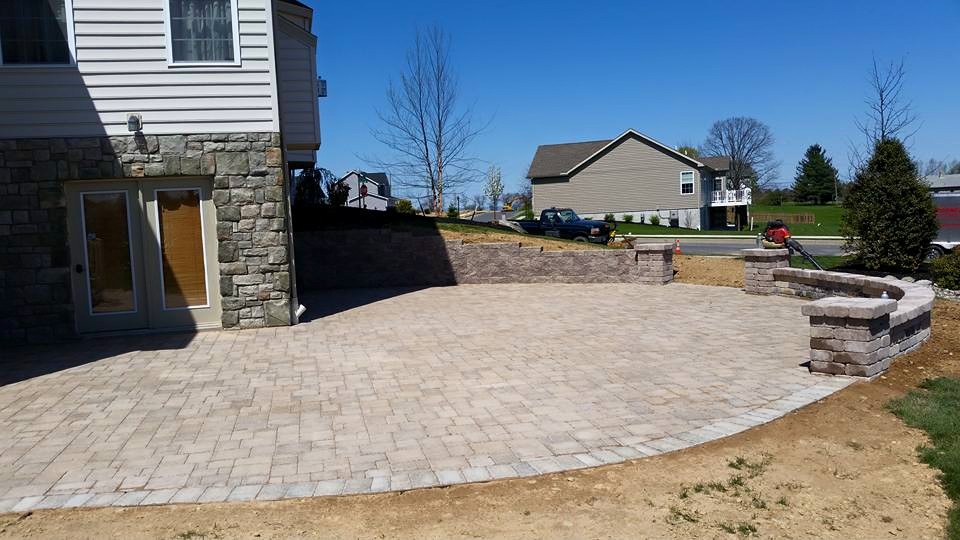 Retaining wall, paver patio, seating wall with pillars