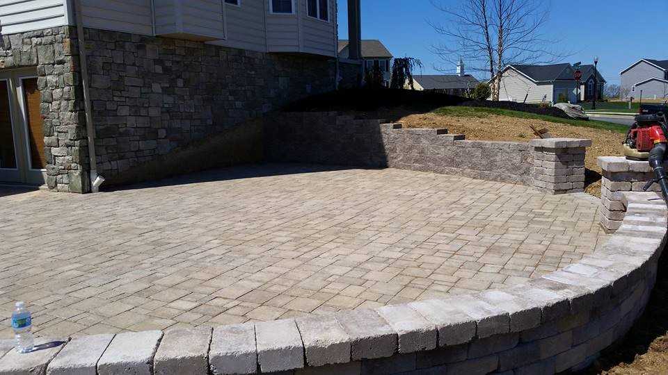This client wanted a patio in a tough spot. So we designed and installed a paver patio that included a retaining wall, along with seating wall and pillars to complete the look.