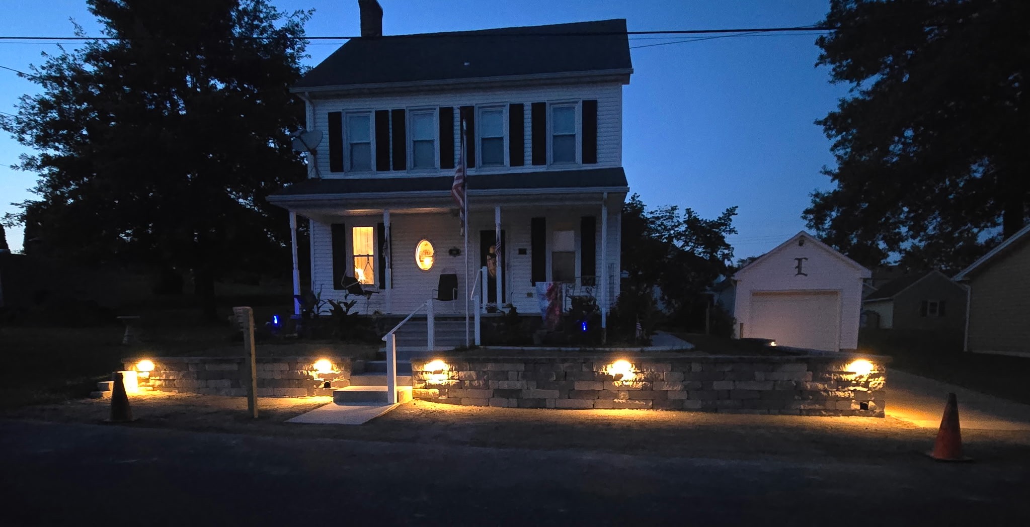 This legacy home, with the same family since the early 1900’s, was in need of a dramatic change to the front yard. We designed and installed a beautiful retaining wall, complete with accent lighting that completely changes the look of the front of the property.