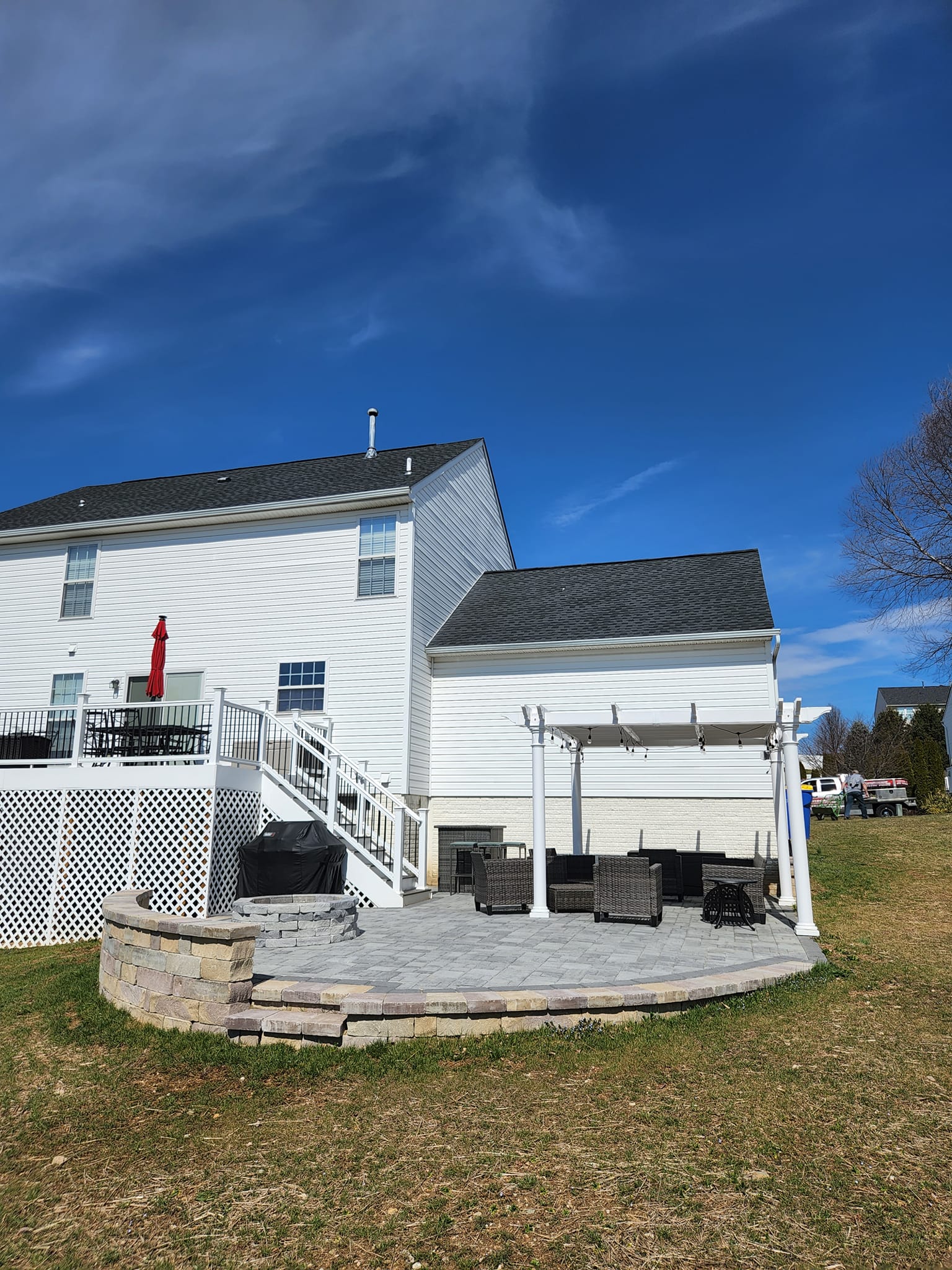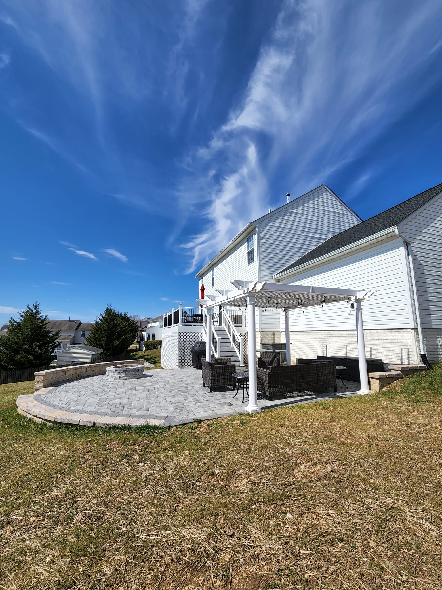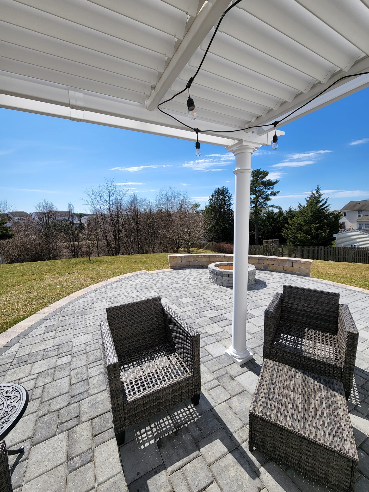 So we designed and installed a custom paver patio, complete with fire pit, seating wall and a pergola for additional shade on those hot days.