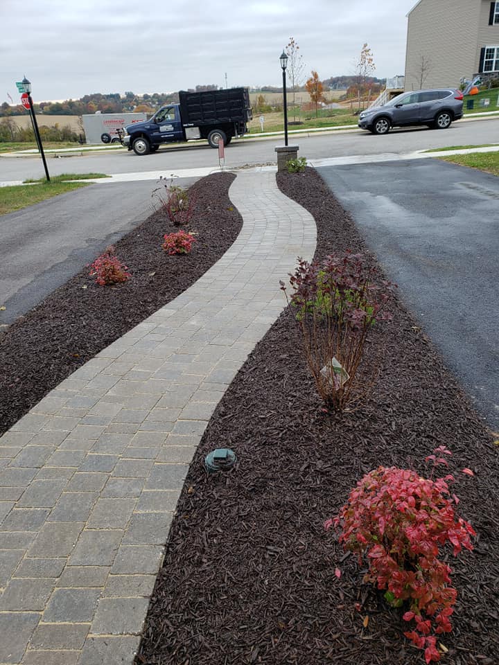 Think townhouses can’t have custom hardscaping? Think again! We made this home stand out from the rest with a custom walkway and lamp post pillar! Finished off with surrounding landscaping.